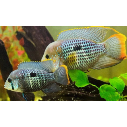 The natural diet of the Green Terror consists of small fish, insects and their larvae, worms, and other invertebrates. They are predators, but in aquarium conditions, they can adapt to other food types.