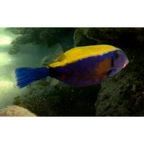 The bluetail trunkfish is harmless. It is not an edible fish for humans. It is available for sale as an aquarium pet.