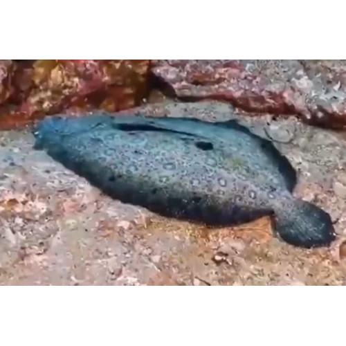 The Peacock flounder is also called the flowery flounder because its body is covered with bluish, flower-like spots. As the family name suggests, bothids have both eyes on the left side of their head. The eyes are located on short stalks, resembling radar dishes, and can move in any direction independently of each other. Thanks to this feature, flounders have a wide field of vision. One eye can look forward while the other looks backward. In juvenile flounders, like ordinary fish, there is one eye on each side of the body, and they swim in the same way as other fish. However, as they mature, the right eye migrates to the left side, and the flounder begins to swim sideways, allowing it to lie flat on the bottom. The lateral line on the eyed side of the body is well-developed, but on the blind side it is usually absent or poorly developed.