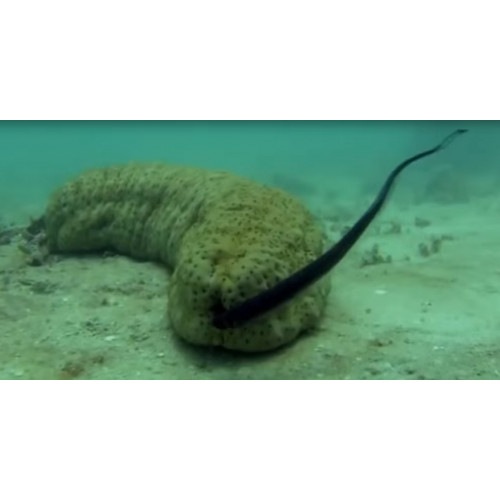The pinhead pearlfish, with its small eyes and specialized mouthparts, may feed, at least partially, on the host's tissues. Preference is given to the leopard sea cucumber (B. argus), as well as the pineapple sea cucumber (T. ananas), which is also used for this purpose.